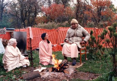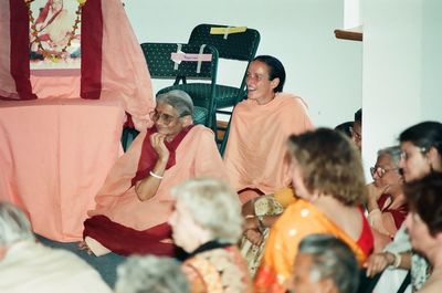 On right, Mataji Gauribrata and Swami Bhashyananda, at the beginning of the Panchatapa ceremony, January, 1990 .